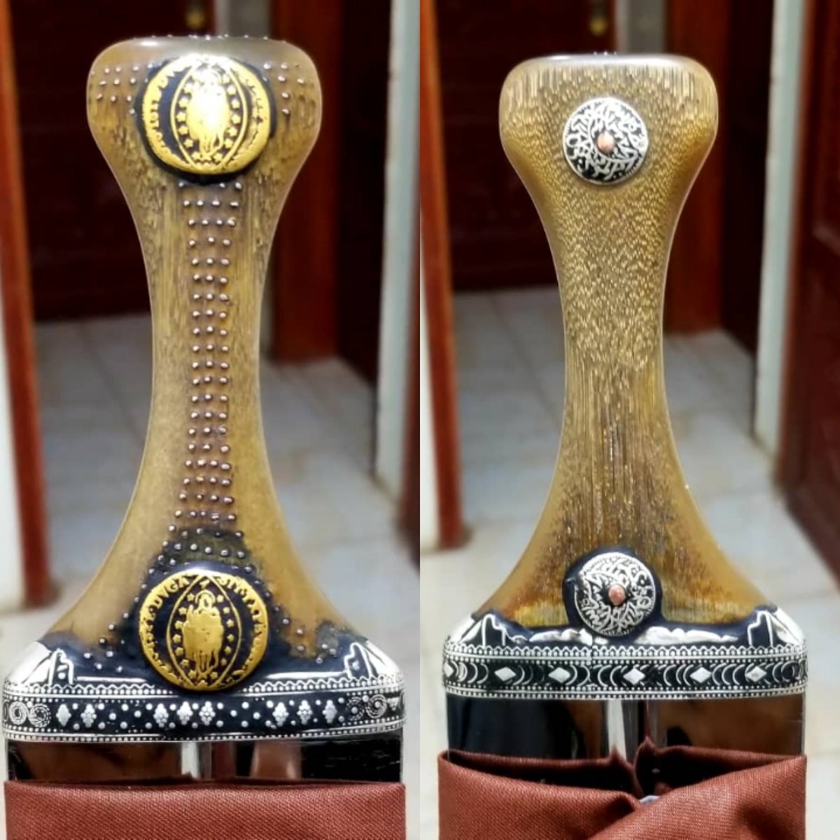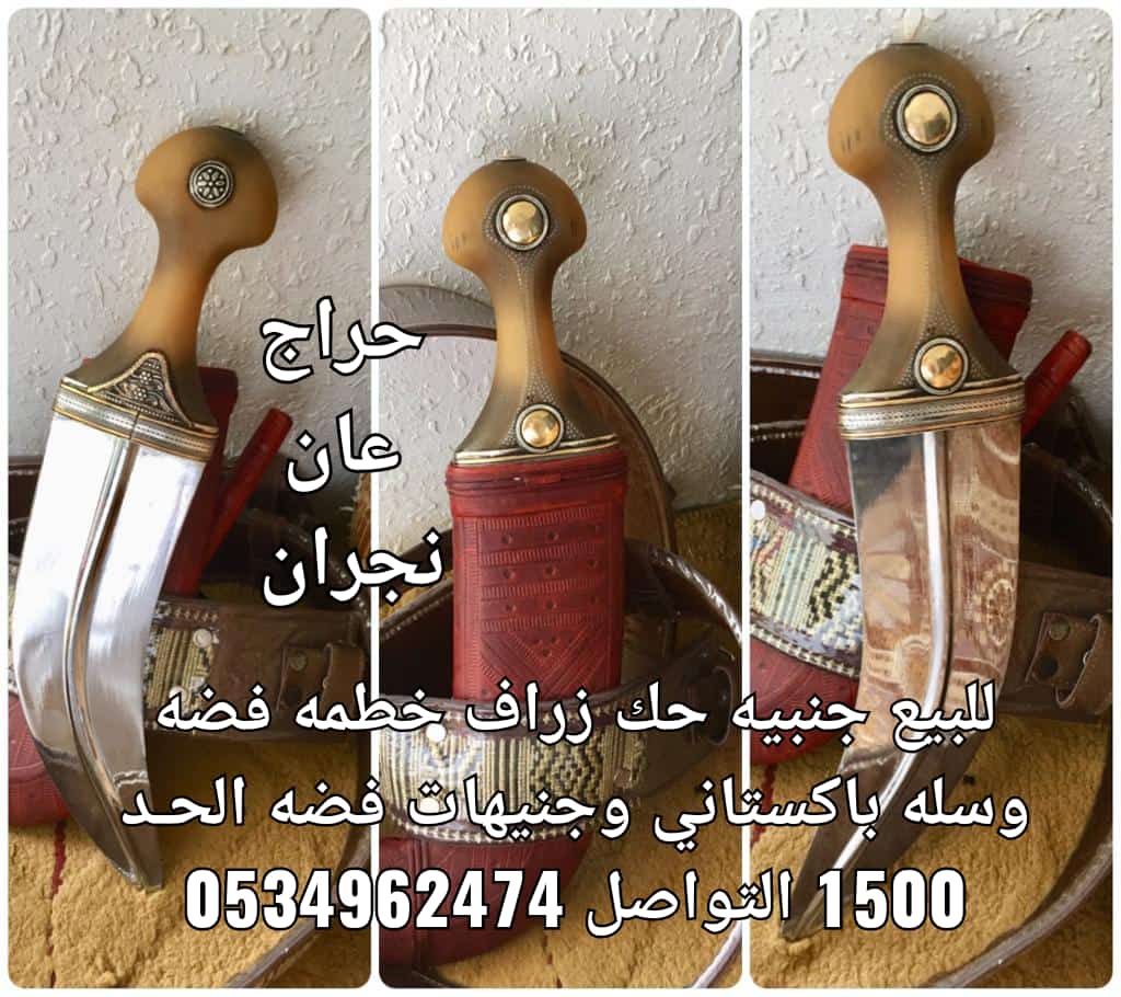 جنبيه زراف قديمه و طيبه قبضه وافيه حروف ملبس ذهب مبسم فضه خالص مضمونه من اي جنبيه صيفاني زراف قديم مضمونه من اي عيب السعر 2600 ريال سعودي محافظه صنعاء.